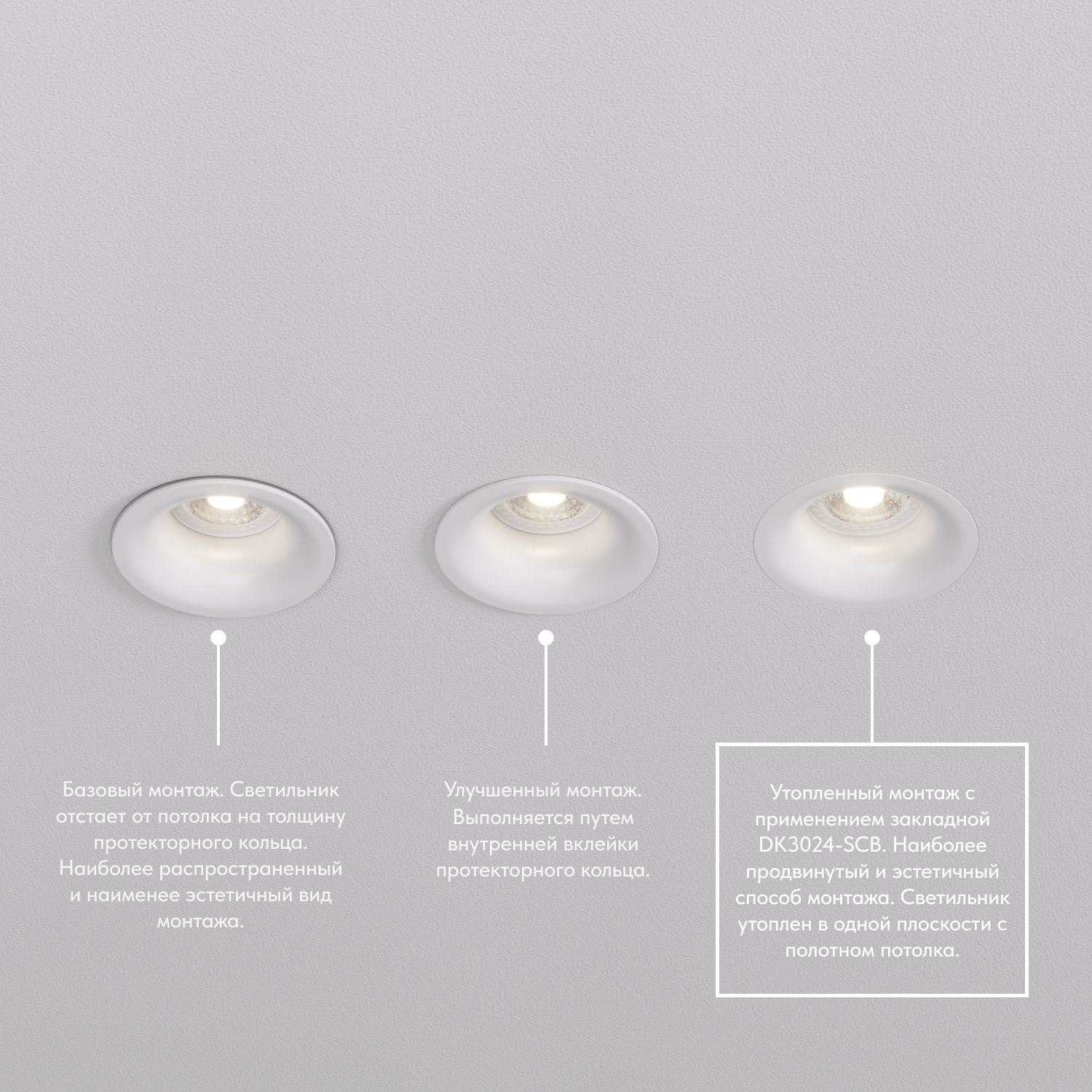 Закладная панель SCB для светильников DK3024. Позволяет добиться эффекта "невидимости" плафона в натяжных потолках за счет утопленного расположения светильника.