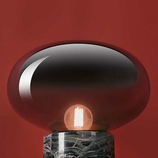 Настольный светильник Moonspot — это идеальное сочетание элегантности и функциональности. Основание из натурального черного мрамора с уникальными светло-серыми прожилками придает светильнику роскошный вид и долговечность. Легкий стеклянный плафон из гальванизированного серого стекла не только создает уютное освещение, но и легко снимается для удобства замены ламп. Компактный размер делает Moonspot идеальным решением для современных и midcentury интерьеров, добавляя утонченность в любое пространство.