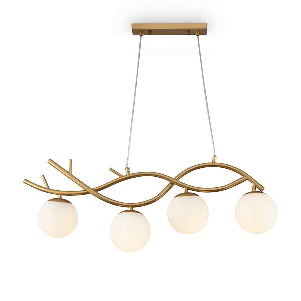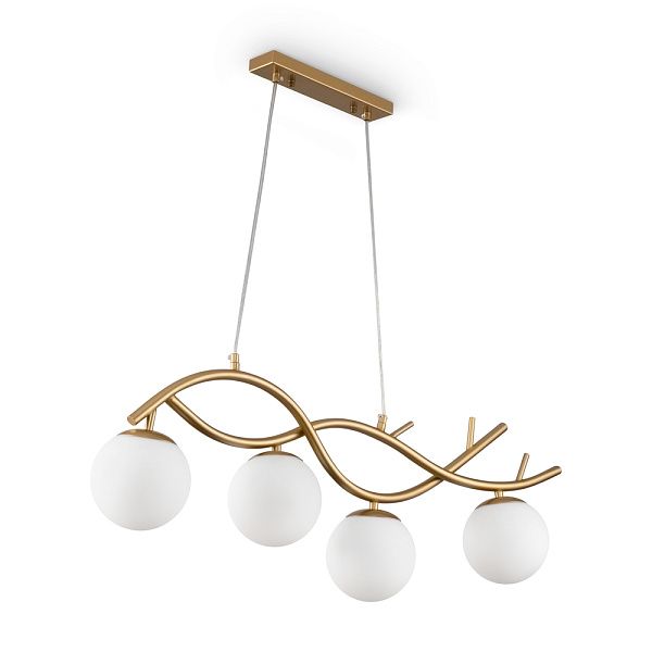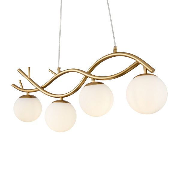 Органичный силуэт серии Rosella напоминает о ветвях деревьев – природные формы привносят в дизайн светильника плавность и легкость. Арматура сделана из металла и окрашена в благородный оттенок латуни. Стеклянные плафоны-сферы поддерживают флористическую метафору, а их матовый белый оттенок идеально дополняет цветовую гамму модели. Универсальная палитра без труда интегрируется в любой интерьер. Сферическая форма плафонов обеспечивает мягкое и равномерное распределение светового потока. Две подвесные люстры различного диаметра позволяют выбрать подходящий вариант с учетом размеров помещения. Невидимые тросы создают иллюзию парящего в воздухе света – тренда современного дизайна. Светильники отлично подойдут для освещения гостиной, кафе и ресторанов, станут частью декоративного ансамбля в интерьере. Рекомендуемые стили – хай-тек, минимализм, сканди, лофт, модерн.