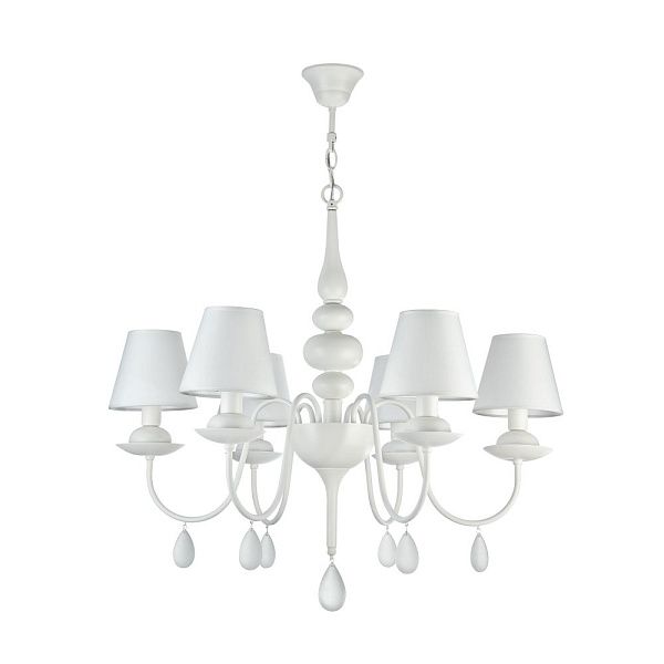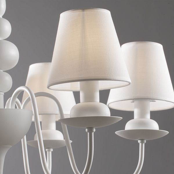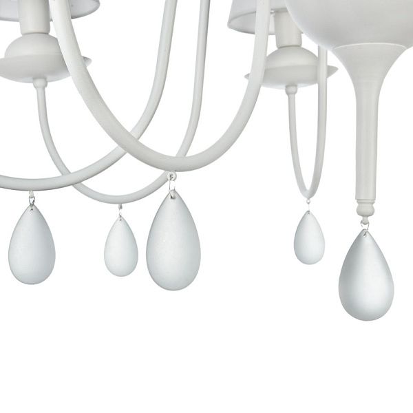 Дизайн светильников серии Eliza - это дуэт классики и современности. Акцент в данной серии сделан на белый цвет, в котором выполнена арматура, абажуры, сделанные из ткани на ПВХ, и каплевидные подвески из матового стекла
