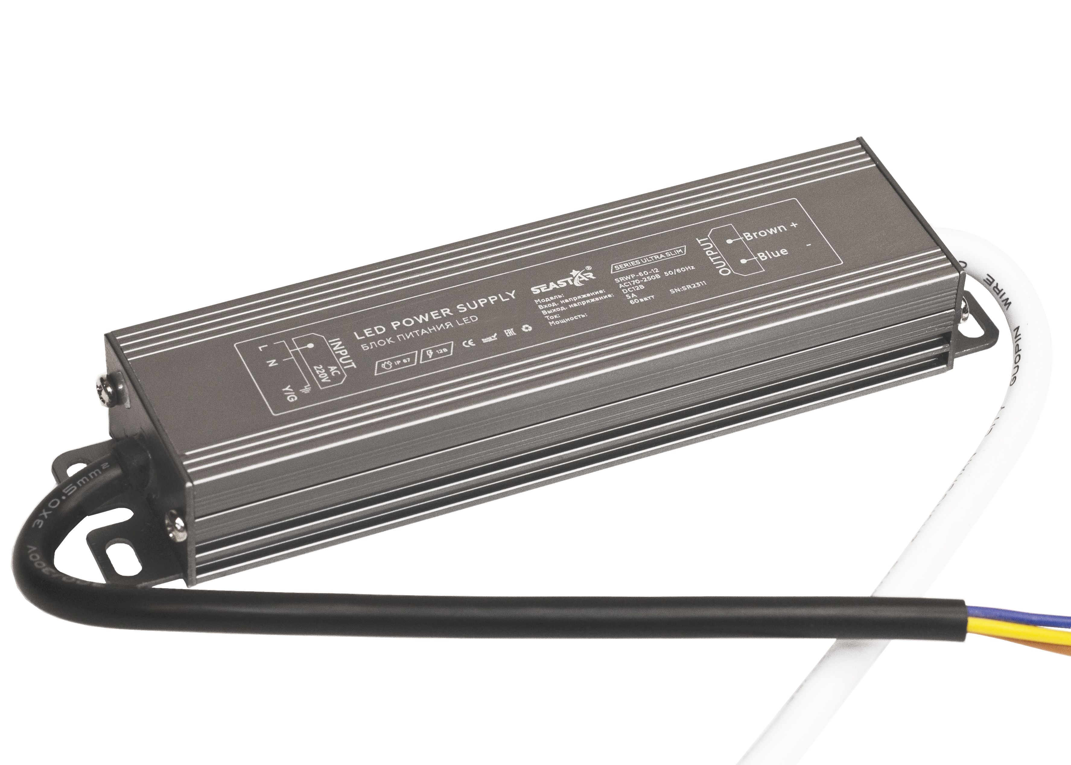 Блок питания 60W 12V IP67 Compact (12V/5A/60W) (SeaStar/IP67 металл/2 года)